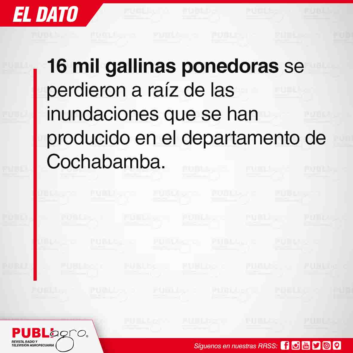 Unas 16 mil gallinas ponedoras, vacunas, alimentos y diferentes implementos para el cuido de las aves fueron arrasados por las inundaciones que ocurrieron en la población de Siripata, municipio Tiquipaya de Cochabamba.