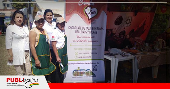 El emprendimiento “Camba Late”, que transforma el chocolate en Trinidad, fue presentado durante la realización de la Expoferia Productiva Departamental en la plaza de la Tradición.
