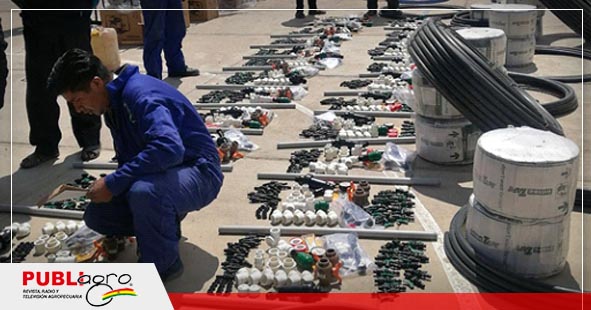 Explicó que con la entrega de 13 motobombas, 22 unidades de sistema de riego y 1.100 metros de malla para semisombra, beneficia a 22 productores de esta asociación, quienes dieron una contraparte de 27.688,20 bolivianos y 64.605,80 de la institución haciendo un total de 92.294 bolivianos.