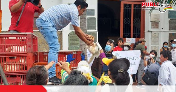 Como parte de la protesta este lunes regalaron pollos a los transeúntes que circulaban por el centro cruceño. «Proponemos que se abran las fronteras por seis meses, hay muy poco maíz», señaló Ortíz que reiteró el pedido al Gobierno para que se los convoque a una mesa técnica.