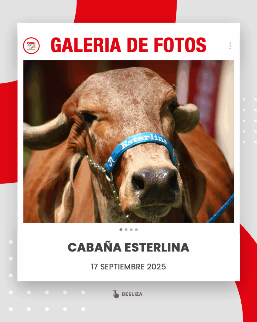 Agenda de eventosSocialera 📷Galería de fotos | Expocruz 2025 Por Publiagro - 17/09/2025 0 13425 FacebookTwitterPinterestWhatsApp Doble triunfo para la Cabaña Esterlina en la raza Gyr. Darla FIV Esterlina se coronó gran campeona con 187,18 kilos, mientras que Jiba FIV Esterlina fue reservada gran campeona con 168,62 kilos.