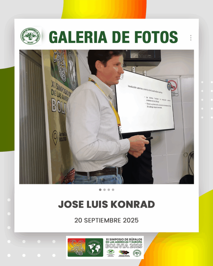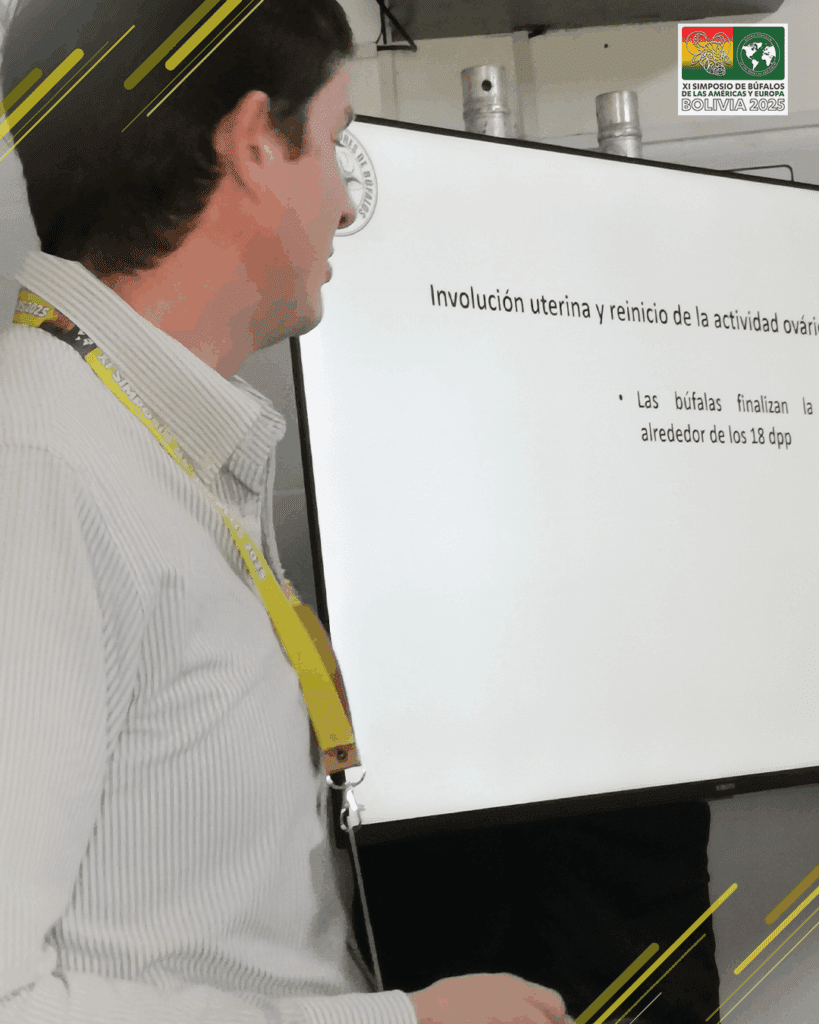La primera charla del Pre Simposio de Búfalos estuvo a cargo del zootecnista y docente argentino José Luis Konrad, quien abordó el manejo reproductivo en búfalas, incluyendo temas como la estación de monta, factores que influyen en la reproducción con IATF y estrategias de manejo para mejorar la eficiencia productiva.