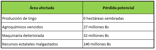 - Una inversión total cercana a 140 millones de bolivianos “botada en galpones y campos sin cultivar”.