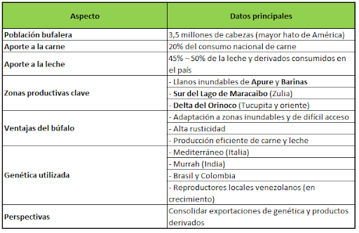 Venezuela ha pasado en pocas décadas de ser un país con presencia incipiente de búfalos a convertirse en el líder continental en número de animales. Con 3,5 millones de cabezas, su aporte a la dieta de los venezolanos es contundente: 20% de la carne y entre 45% y 50% de la leche consumida provienen del búfalo.