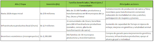 - Financiamiento sostenible: la segunda fase proyecta Bs 200 millones, pero dependerá de compromisos de financiamiento internacional y del Tesoro General del Estado.