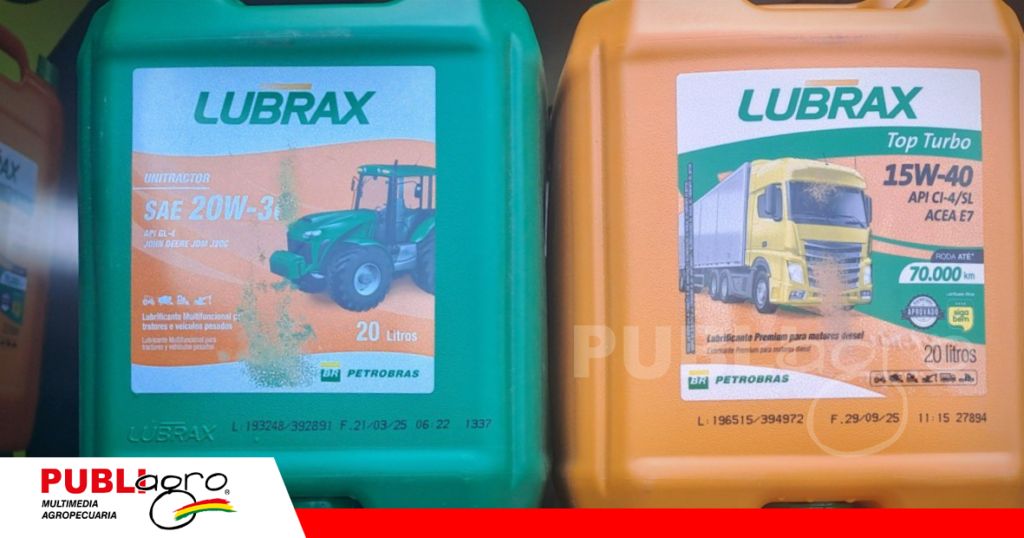 Entre los productos destacados se encuentra el Lubrax agrícola 15W-40, ampliamente utilizado en motores y sistemas de transmisión hidráulica, reconocido por su capacidad de protección y desempeño en trabajos de alta exigencia.