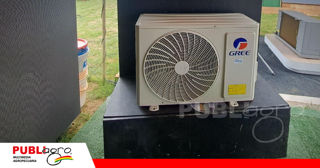 Durante la feria, la compañía exhibe diferentes equipos de climatización, cámaras de semilla y sistemas energéticos, aunque la principal novedad es el split solar, un aire acondicionado que puede conectarse directamente a paneles solares.