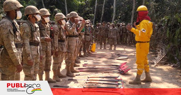 La Paz, 24 de septiembre de 2020.- El Ministerio de Medio Ambiente y Agua (MMAyA), a cargo del cuerpo de protección del Servicio Nacional de Áreas Protegidas (SERNAP), brindó un taller de capacitación al “Regimiento de Infantería R36 Santos Pariamo” de las Fuerzas Armadas (FF.AA.), ubicado en el municipio de Rurrenabaque (Beni). Este abordó temas de prevención, control y liquidación de incendios forestales.
