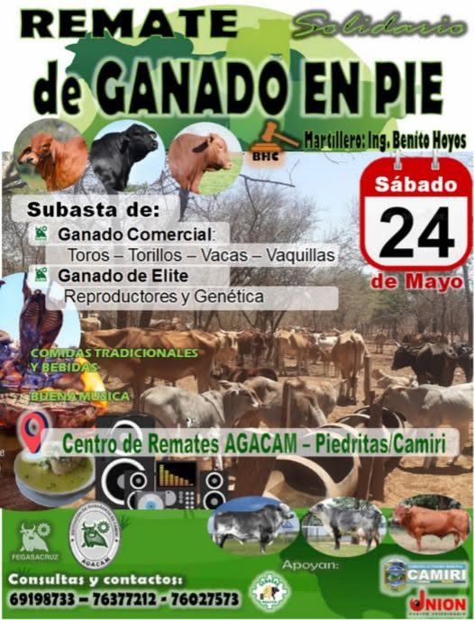 24/05/2025 - 9:00 am - 2:00 pm Remate Agacam Centro de Remates Agacam Camiri, Camiri, Santa Cruz, Bolivia Gratuito