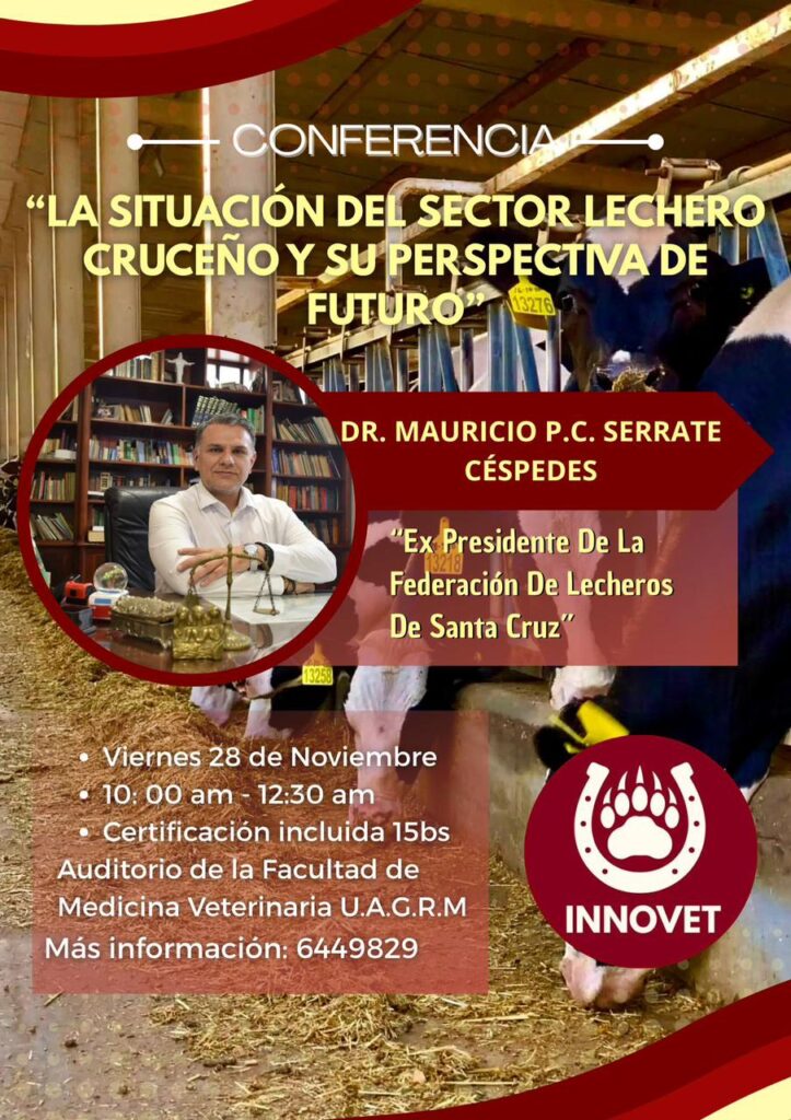 28/11/2025 - 10:30 am - 12:30 pm CONFERENCIA: LA SITUACION DEL SECTOR LECHERO CRUCEÑO Y SU PERSPECTIVA DE FUTURO Auditorio de la Facultad de Medicina Veterinaria